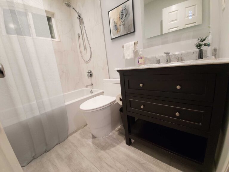 This modern bathroom remodel in Lake Forest highlights how thoughtful design and quality materials can completely transform a space. With elegant porcelain tile, a sleek new tub, and carefully chosen finishes, this project turned an ordinary bathroom into a stylish, comfortable retreat that’s perfect for everyday use.