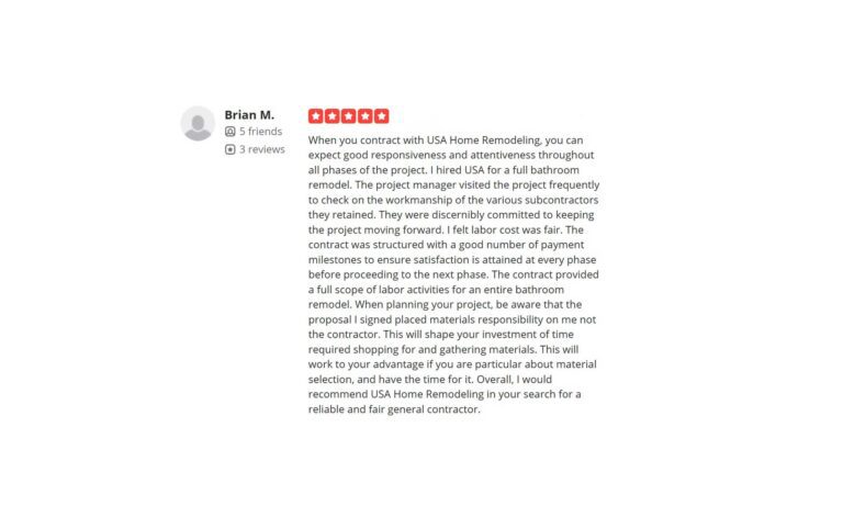 “I would recommend USA Home Remodeling in your search for a reliable and fair general contractor.”