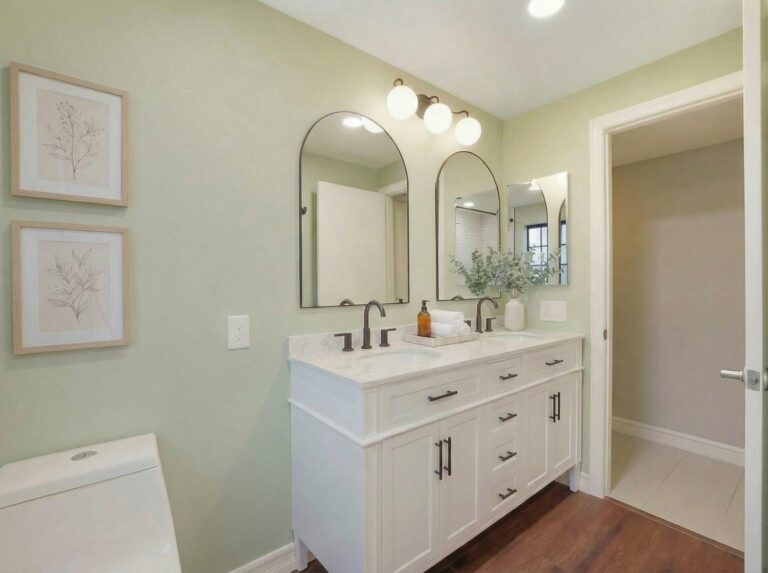 - Paint Colors: SW6177 Softened Green (walls), White (ceiling and baseboards)