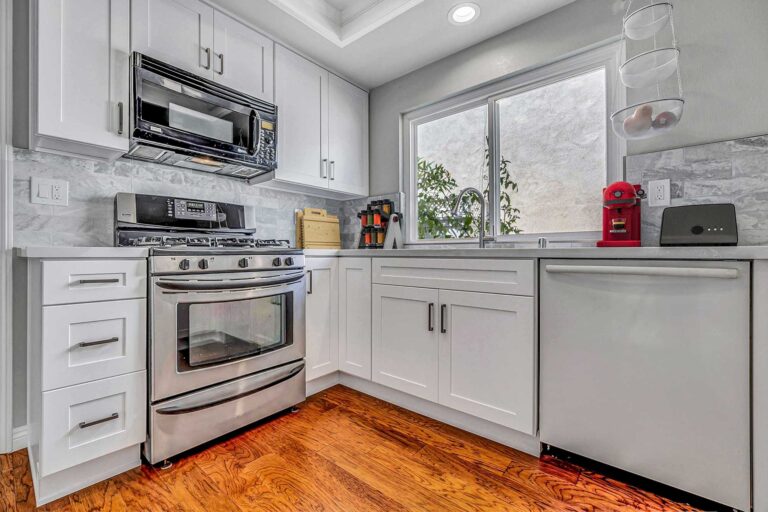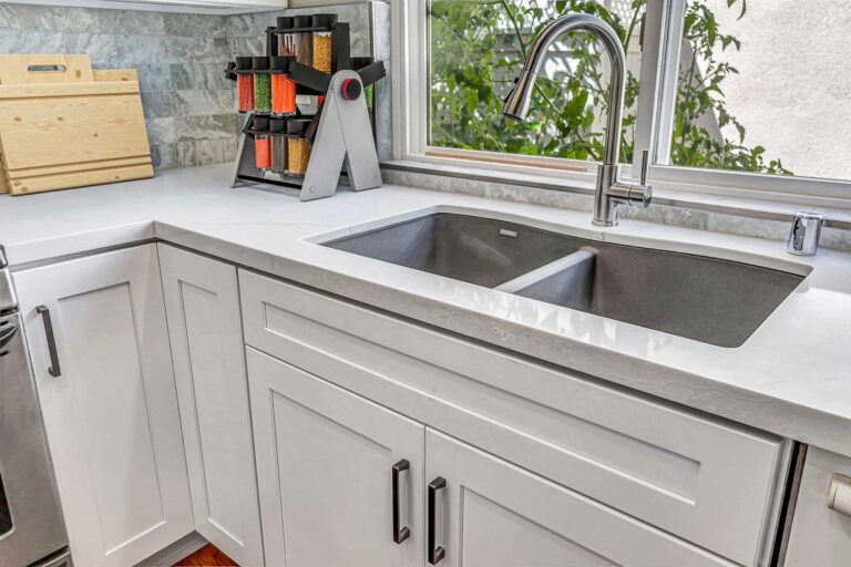 One of the major highlights of this Irvine kitchen renovation was relocating the sink to the center of the window. This strategic change not only enhances natural light while working at the sink but also creates a visually balanced focal point for the room. A sleek new faucet, along with a high-performance dishwasher and garbage disposal, were installed to ensure both elegance and efficiency.