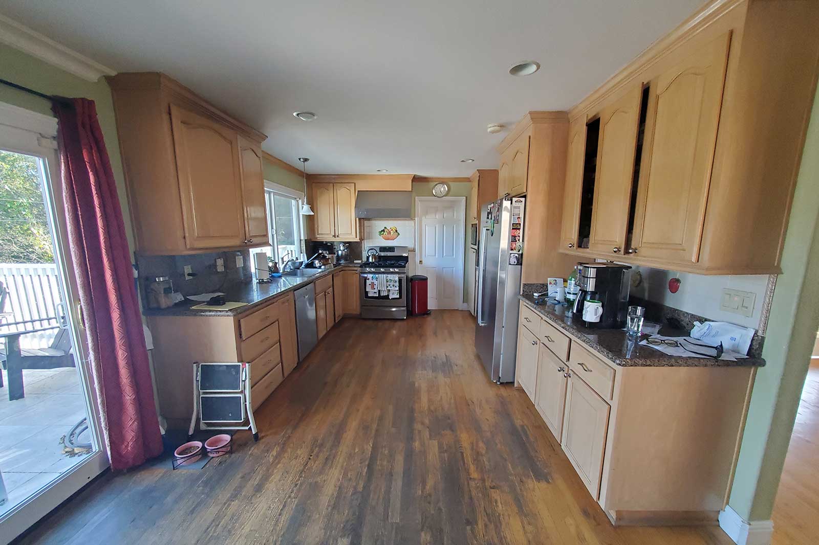 A dramatic before-and-after! We removed walls, expanded the layout, and created a bright, modern open-concept kitchen and living area. The updated design features a spacious double island, custom shaker cabinets, quartz countertops, and sleek matte black fixtures—perfect for both entertaining and everyday life.If you’re looking for expert kithcen remodeling in Newport Beach that transforms your space and elevates your lifestyle, this project by USA Home Remodeling is the perfect inspiration. Let us help you turn your kitchen into a dream space that feels like home.